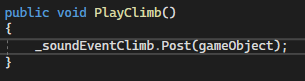 My programmer provided unity events where I could attach my Wwise events with a simple script, showcased in the following screenshots.