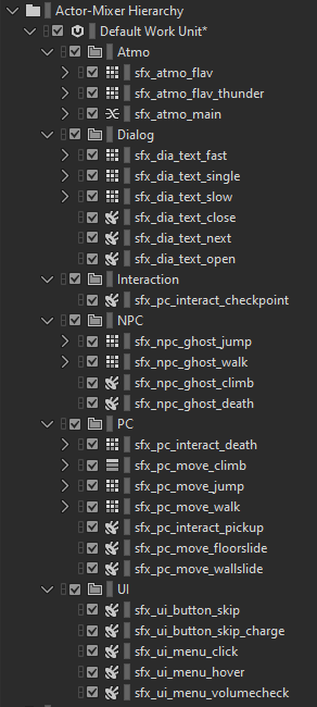 The base design principle behind my sounds was my wish to do sound design for a horror game. But more importantly, this was the first time I decided to implement my SFX with Wwise myself, writing my own code where necessary.
